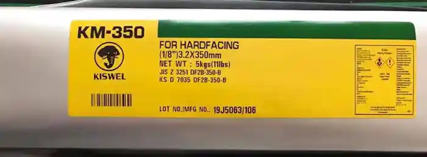Que hàn KM-350 Kiswel là sản phẩm que hàn hydro thấp, được sản xuất bởi Kiswel – thương hiệu hàng đầu Hàn Quốc với công nghệ hiện đại. Que hàn này có khả năng tạo lớp phủ cứng chịu mài mòn liên kim loại và chịu va đập vừa phải, phù hợp với nhiều ứng dụng công nghiệp như: